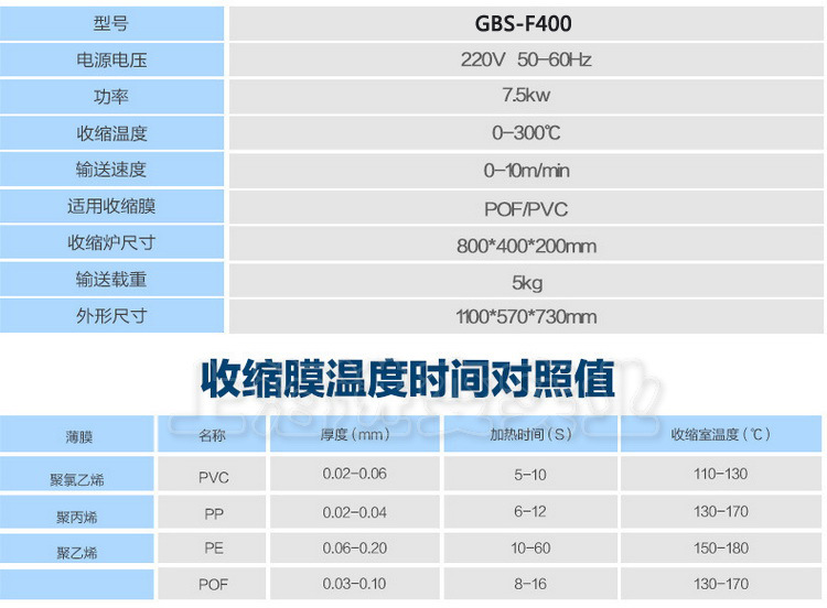 6根據(jù)薄膜的材質(zhì)和厚度,設定封切時間,一般為1.5秒左右;當封切時間結(jié)束后,壓框?qū)⒆詣訌椘穑馇休斔蛶⑽锲吠湛s爐內(nèi)運送,當封切后的物品剛好全部進入收縮輸送線內(nèi)時,封切輸送線剛好停止,此為**輸送時間。