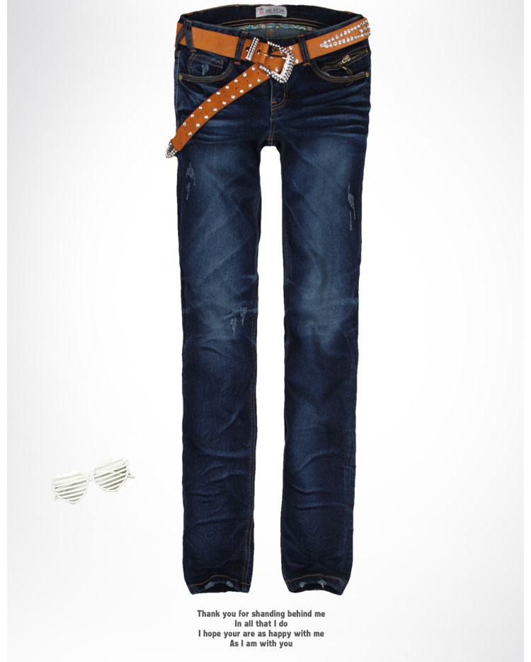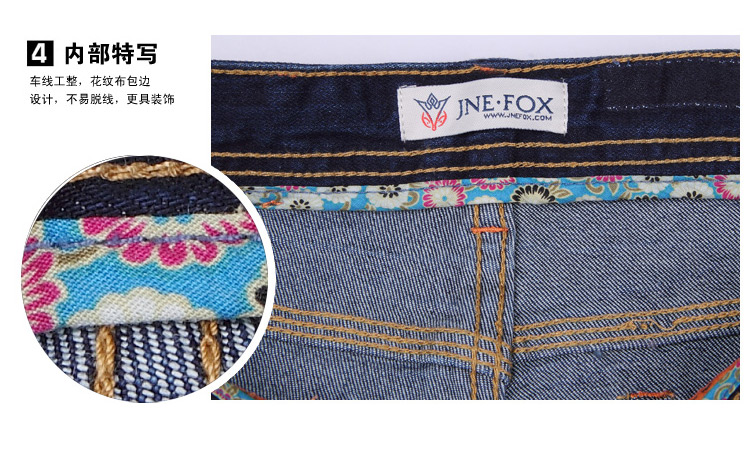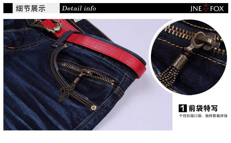 供應(yīng)江南帝狐JNEFOX 修身磨破貓須折皺洗水拉鏈流蘇中腰小腳牛仔褲 女