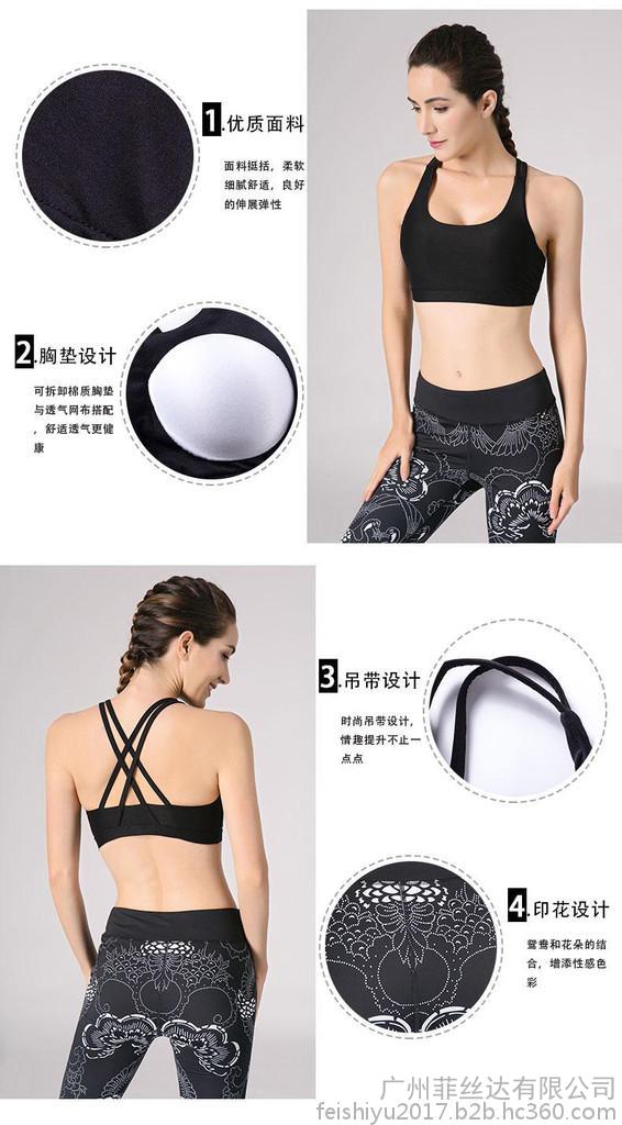 妃詩語 瑜伽服背心2017夏季新款瑜伽套裝無痕速干內衣氣質高彈運動九分褲瑜伽套裝
