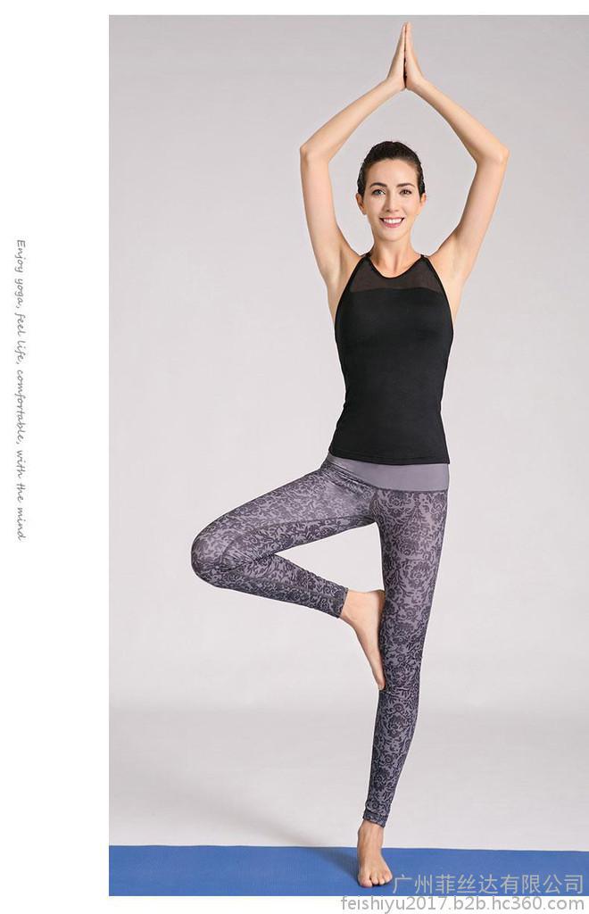 F3011 瑜伽背心瑜伽服套裝 妃詩語春夏季女顯瘦修身健身房運動跑步印花瑜珈服