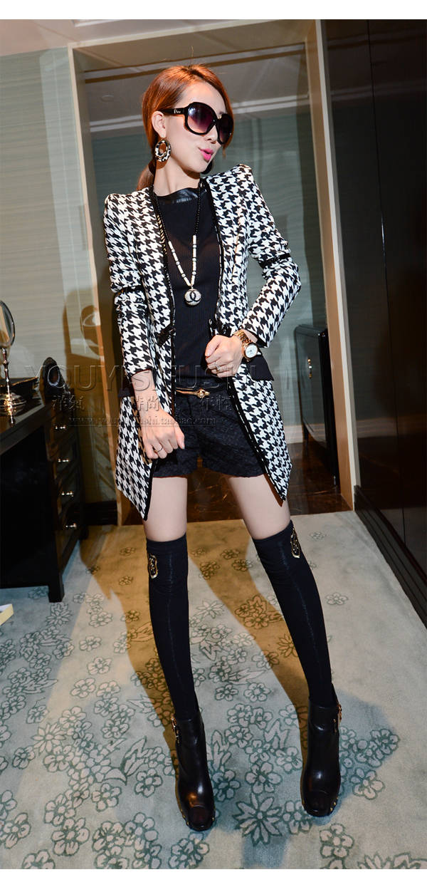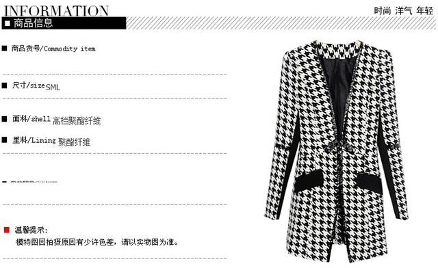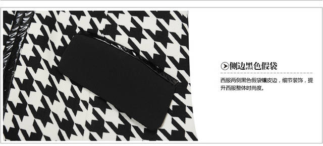 首頁 > 供應產(chǎn)品 > 秋冬新品女裝千鳥格亮皮鑲邊中長款修身款西服西裝外套女