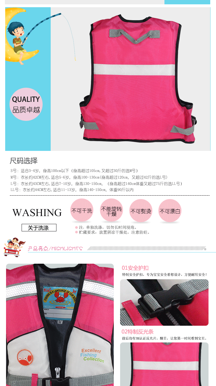 專業時尚兒童救生衣 專業游泳漂流浮潛釣魚浮力背心帶口哨