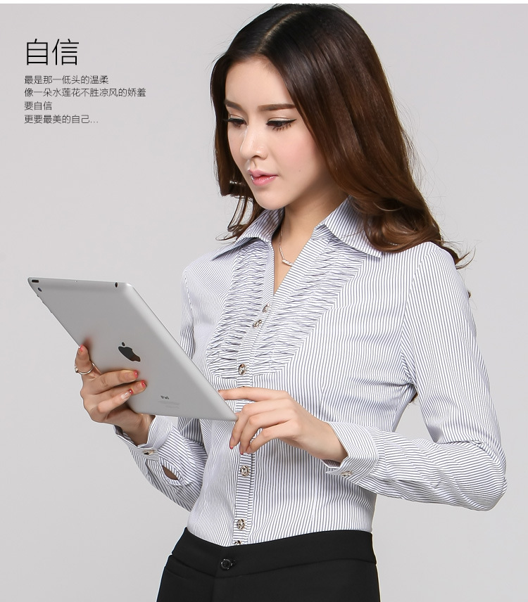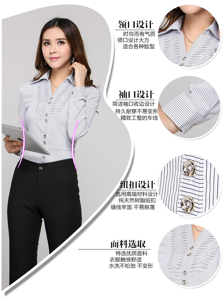 妃龍瀚馬2015新款職業(yè)裝女裙套裝條紋長(zhǎng)袖襯衫半裙女士襯衣OL正裝