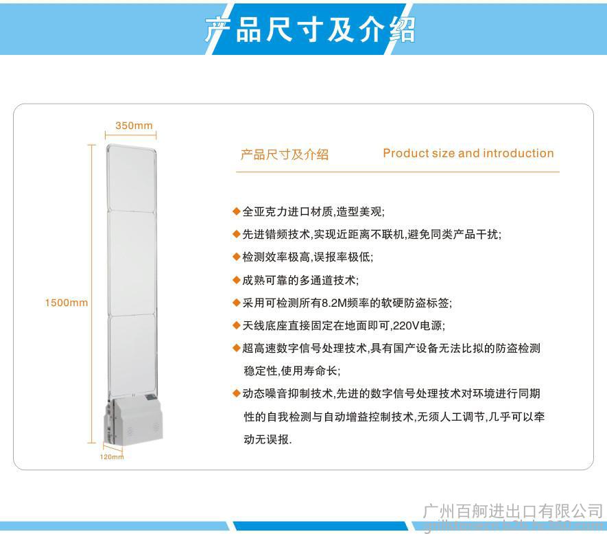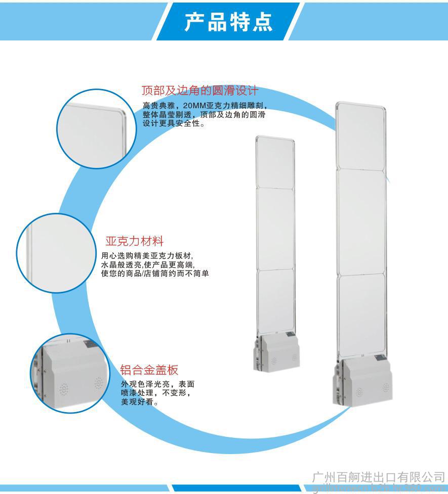 優(yōu)點 | 此款服裝超市防盜門的特點更寬的檢測門距,更廣的檢測區(qū)域,更強的環(huán)境適應(yīng)性,性價比優(yōu)勢的超市防盜檢測器設(shè)備。 |