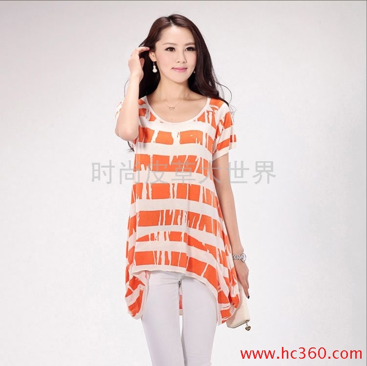 貨號: 6113袖長: 短袖領型: 圓領風格: 休閑圖案: 條紋顏色分類: 桔色 淺黃色 黑色尺碼: S M L XL XXL價格區間: 121-200元季節: 春季 夏季 秋季袖型: 常規袖年份: 2012適合人群年齡段: 25-35歲