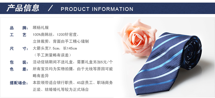 圖案: 條紋 領(lǐng)帶寬度: 普通型(7cm-12cm) 質(zhì)地: 滌絲 里料材質(zhì): 滌絲 顏色分類: 粉紅色 深藍(lán)色 淺黃色 品牌: 顧楊西服 貨號(hào): ld001