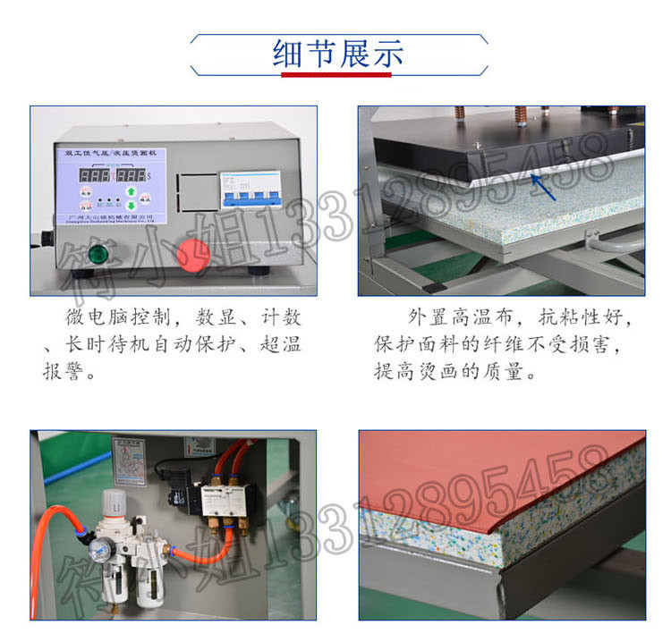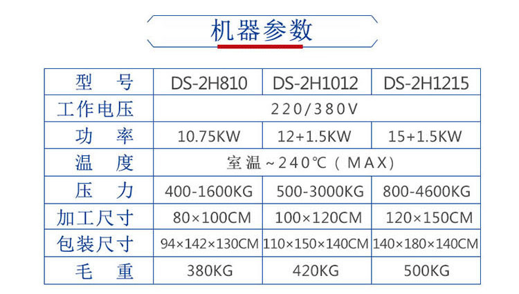 機器采用液壓裝置,壓力大且性能穩定;加熱板采用特殊管環繞設計,加熱均勻,發熱管與發熱板注為一體,安全耐用發熱均勻,熱導性強;可調整壓力,操作方便。