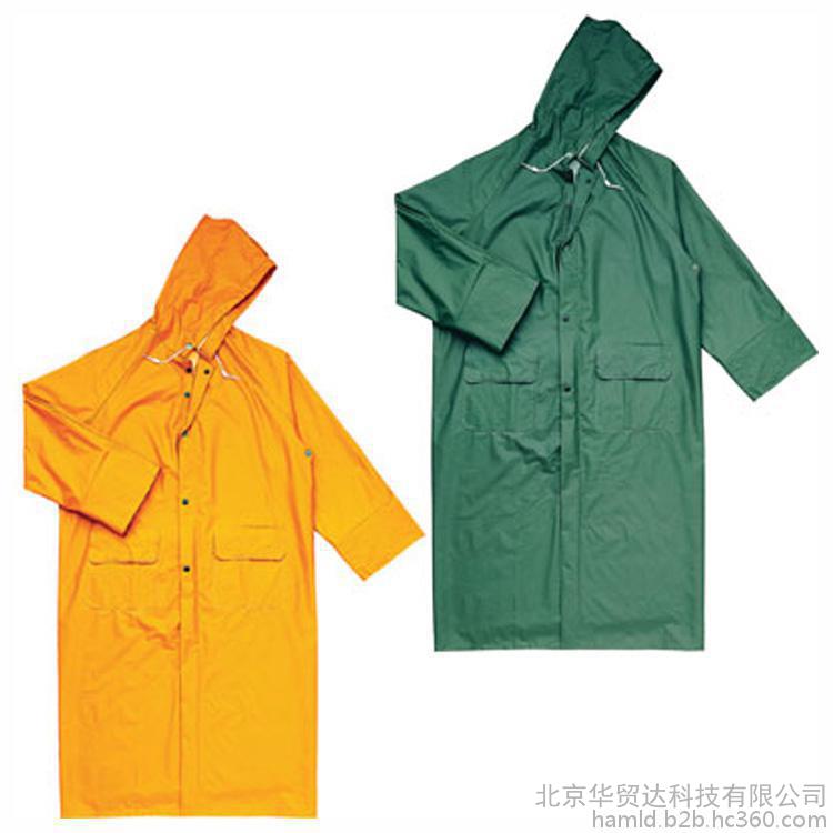 保養:用沾水海綿清洗,禁止機洗**高清洗溫度:40°C。小心清洗。禁止漂白、熨燙或蒸汽處理。禁止干洗,或用洗滌劑去污。禁止滾筒甩干。產品說明 :雨衣,接縫處縫合且粘牢密封。連衣帽帶帽帶,按扣式沿邊,內有防風帽邊,套袖內部帶有防風袖口,2個帶有沿邊的外貼式口袋,長度:1.20米。厚度:0.32mm。