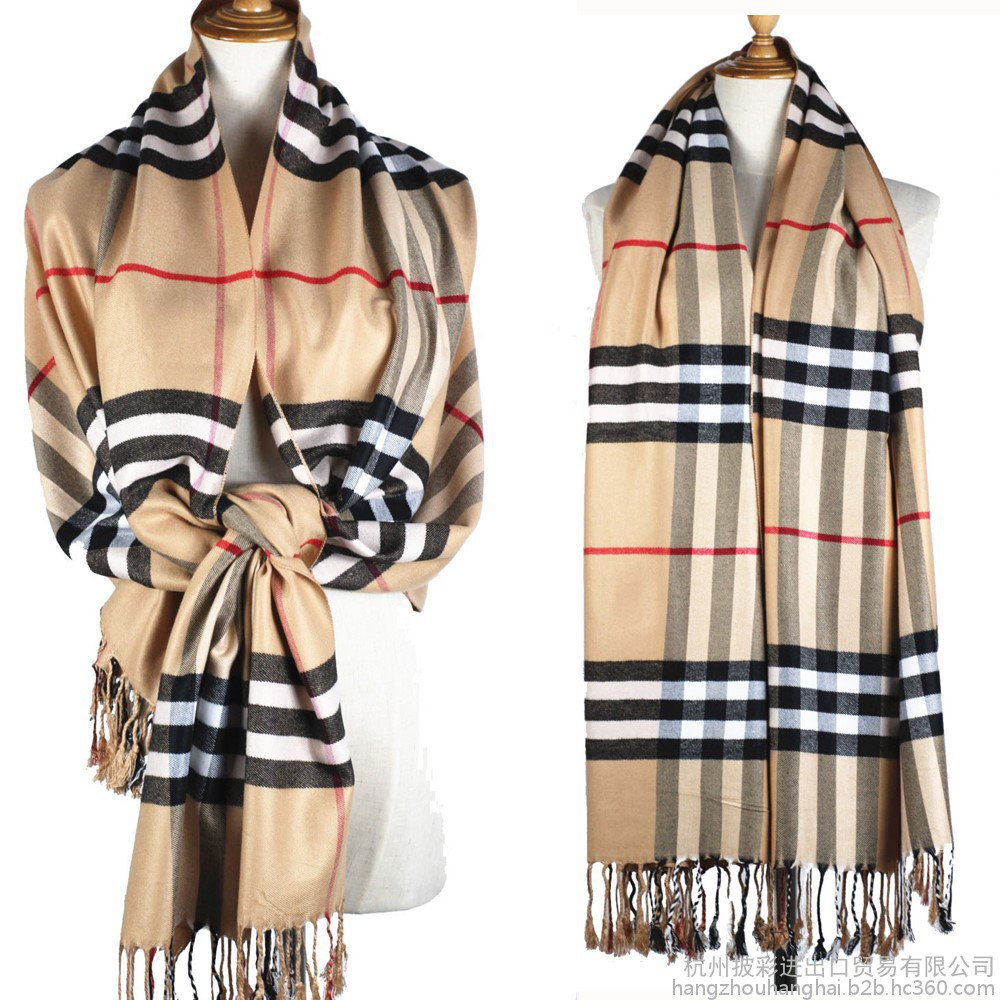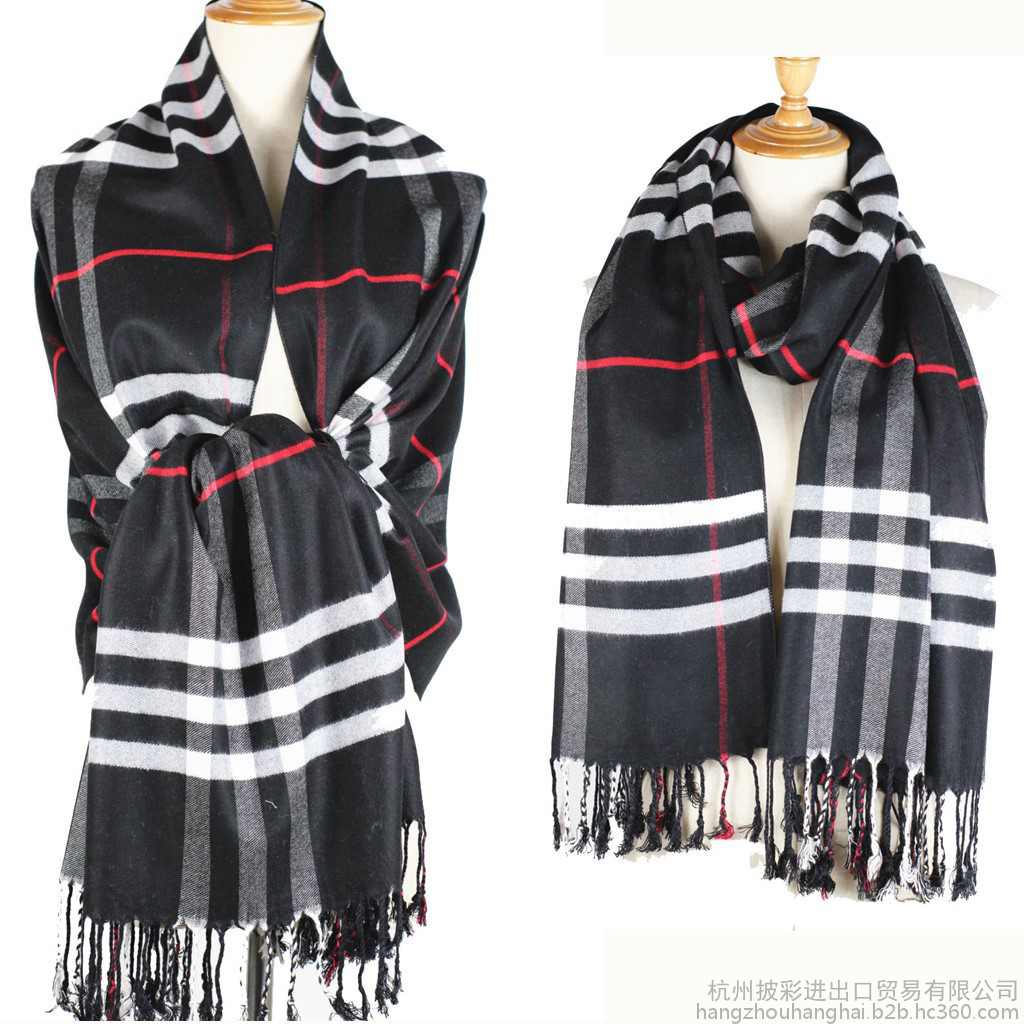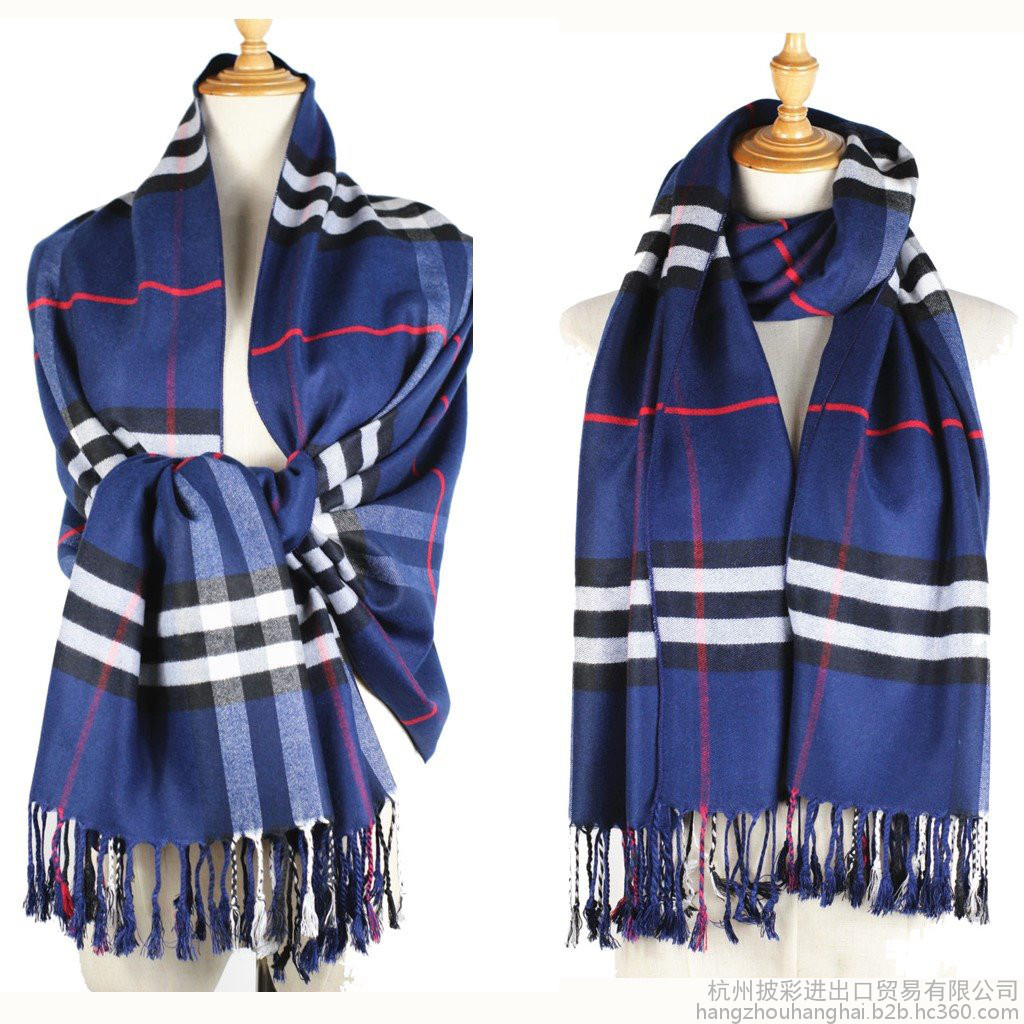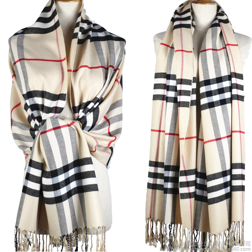 披彩英倫風情經典格子羊絨圍巾拉毛保暖