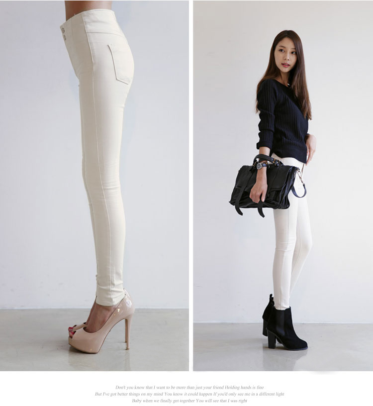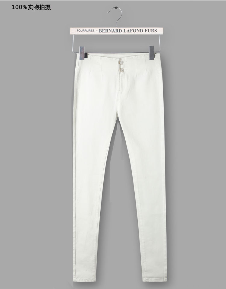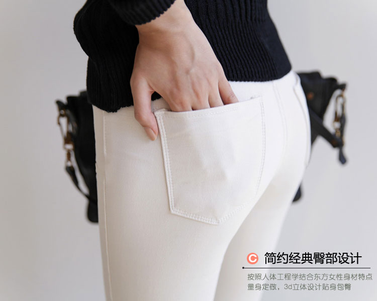 秋冬韓國代購高腰白色加絨加厚牛仔小腳長褲彈力修身鉛筆褲女