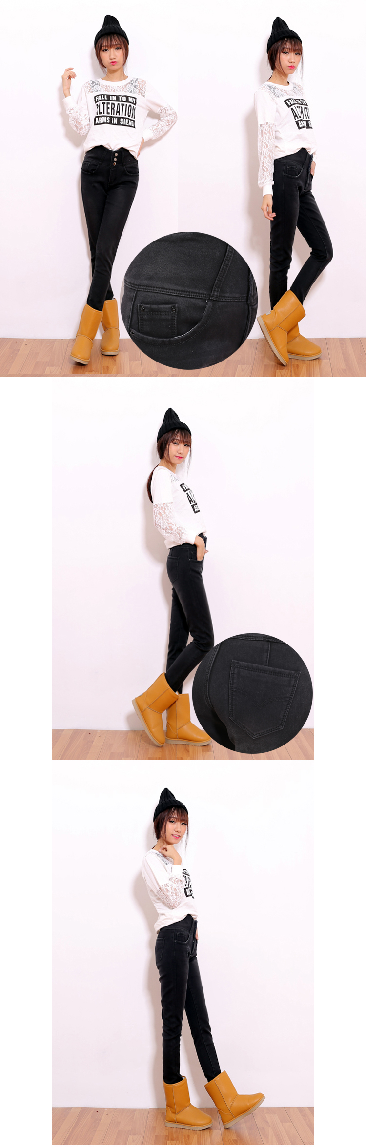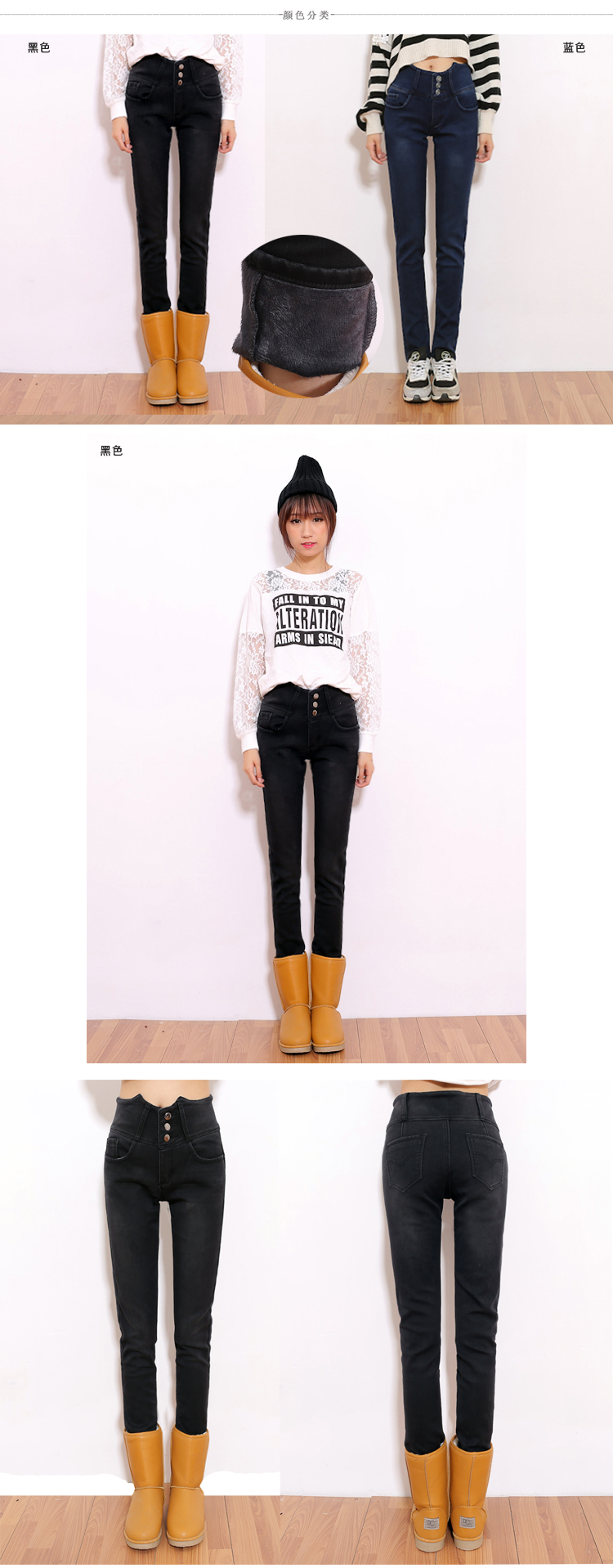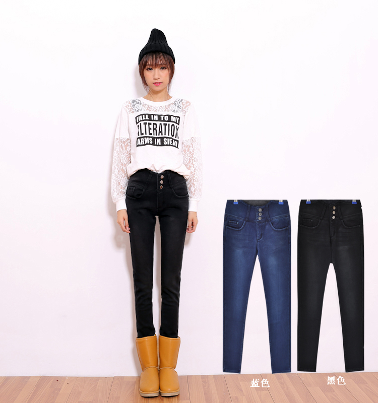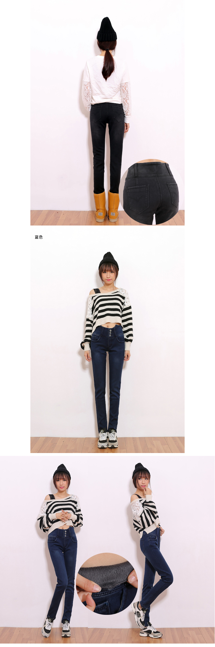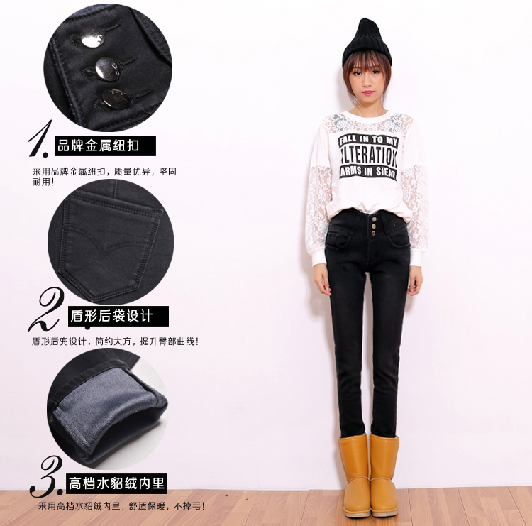 2014秋冬韓版高腰加絨牛仔褲大碼水貂絨加厚小腳鉛筆褲靴褲