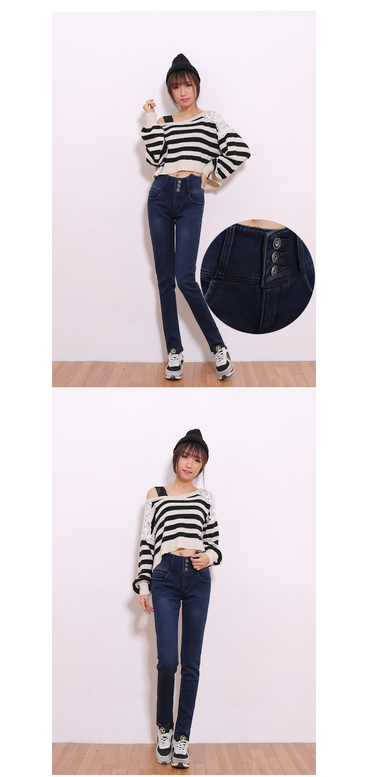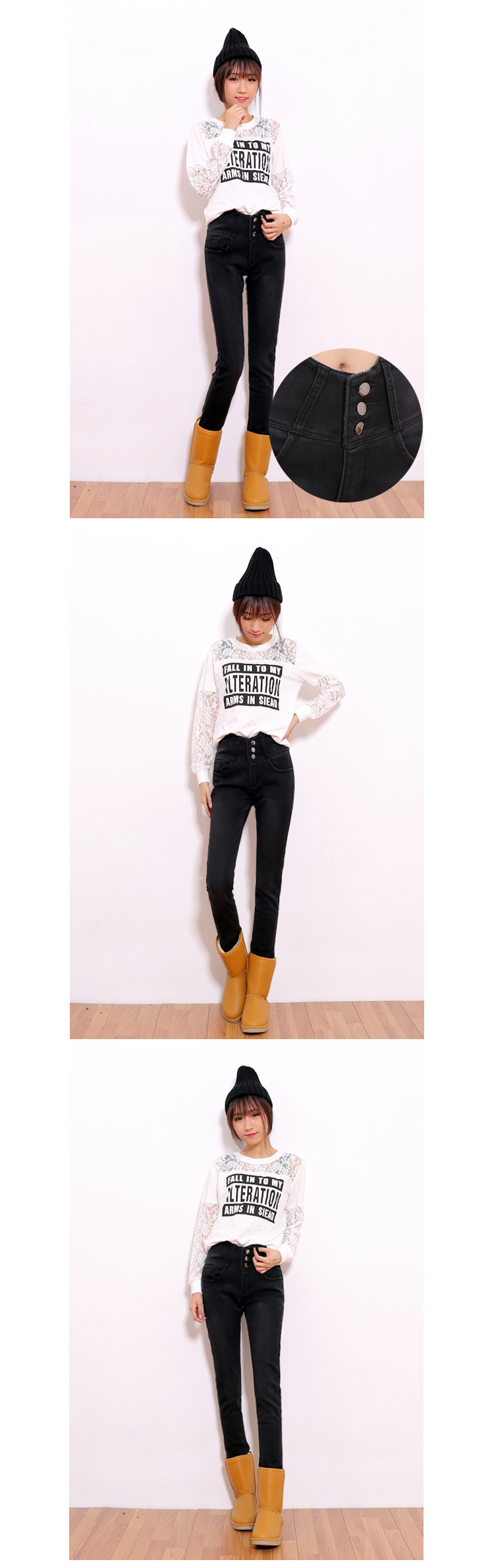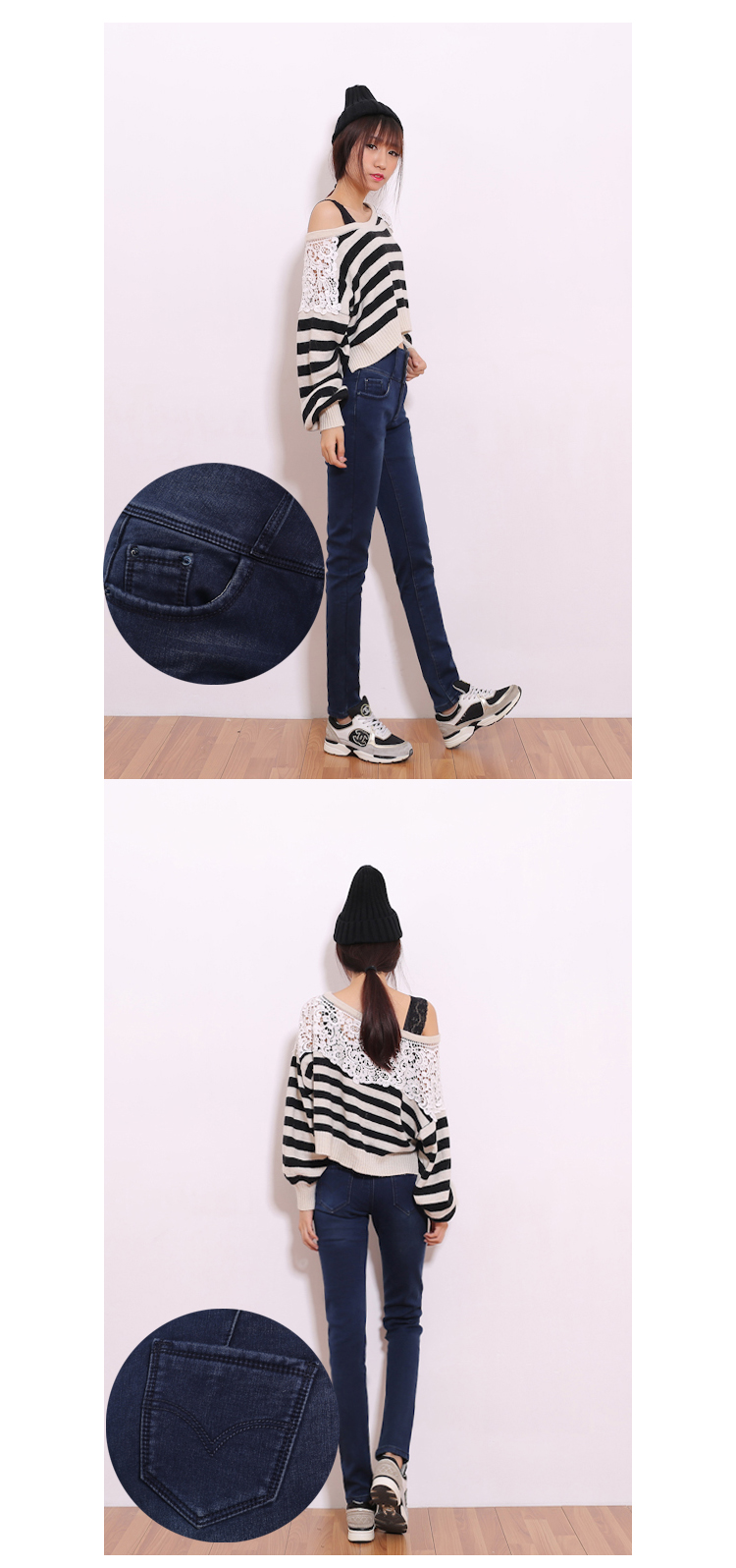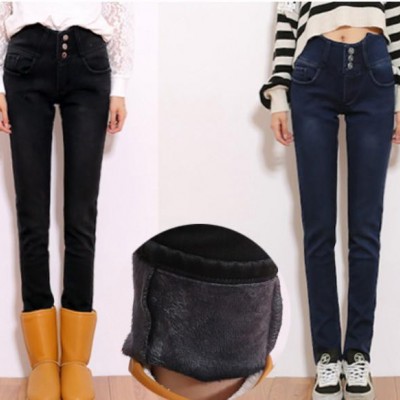 2014秋冬韓版高腰加絨牛仔褲大碼水貂絨加厚小腳鉛筆褲靴褲
