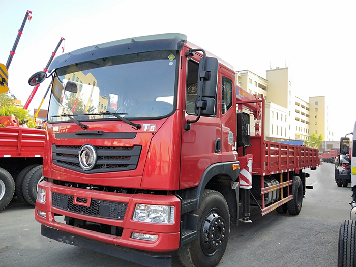 東風T5 單橋 軸距5100,玉柴180馬力,陜齒8檔變速,5.5T/11.5T前后橋,10.00R20鋼絲胎。300局部三層大梁,底/整:EQ5180GLVJ / EQ5180JSQLV1 貨箱尺寸:5700*2300*550 可配5噸至10噸吊機。