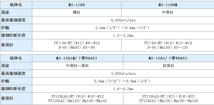 MS-1190/1190M(雙針/薄料~中厚料規格)