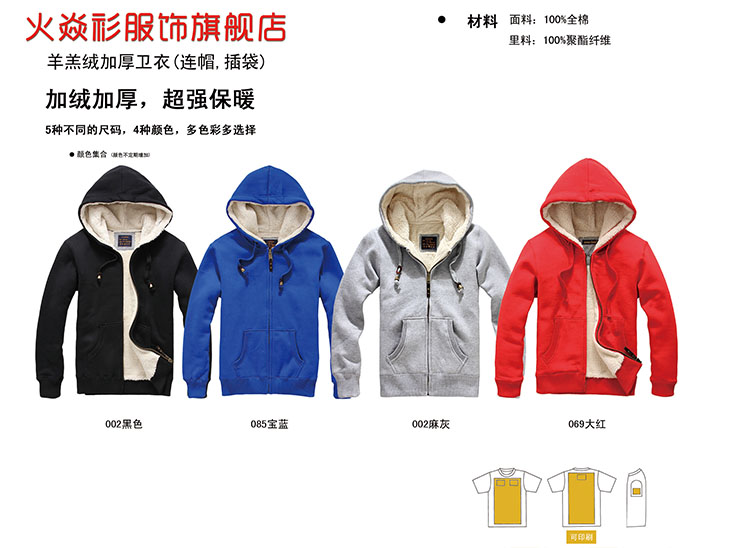 火焱衫新款羊羔絨秋冬裝外套男女式拉鏈加厚開衫連帽情侶衛衣棉襖