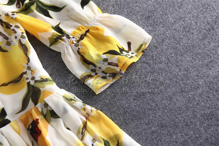 11street蕾絲衫/雪紡衫 真絲印花連衣裙 喇叭袖