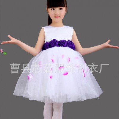 新款兒童舞臺舞蹈裙女童表演裙演出服禮服蓬蓬公主連衣紗裙合唱服
