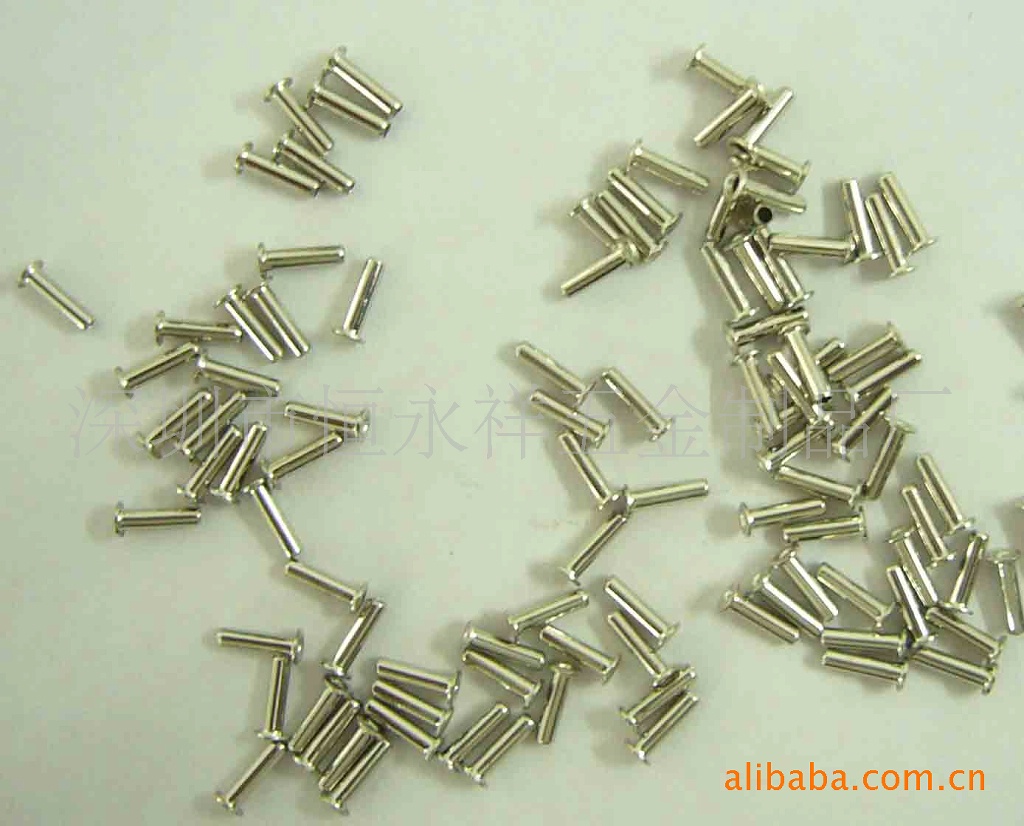 本工廠是一家專業生產金屬雞眼鉚釘,五金螺絲,自動車床件,及五金沖壓件的廠家。公司集開發、制造、銷售、服務于一體;本公司的產品有電路PCB板鉚釘雞眼、電路板層壓鉚釘雞眼、電子喇叭鉚釘雞眼、電機電器鉚釘雞眼、各類玩具/服裝/箱包/裝飾品所用鉚釘雞眼、各種規格的五金螺絲、各種材質的自動車件,產品規格/型號應有盡有;也可根據廠家客戶需求訂做各種規格的雞眼、鉚釘、螺絲及自動車床件。本司生產技術先進、制作精良、用材考究,生產的五金緊固件,自動車床件款式多多,品種齊全,可滿足客戶緊固件一站式打包采購。