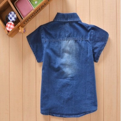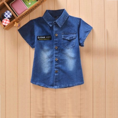 雙十一新春夏款韓版潮兒童男童裝女童短袖T恤方領純色牛仔襯衫