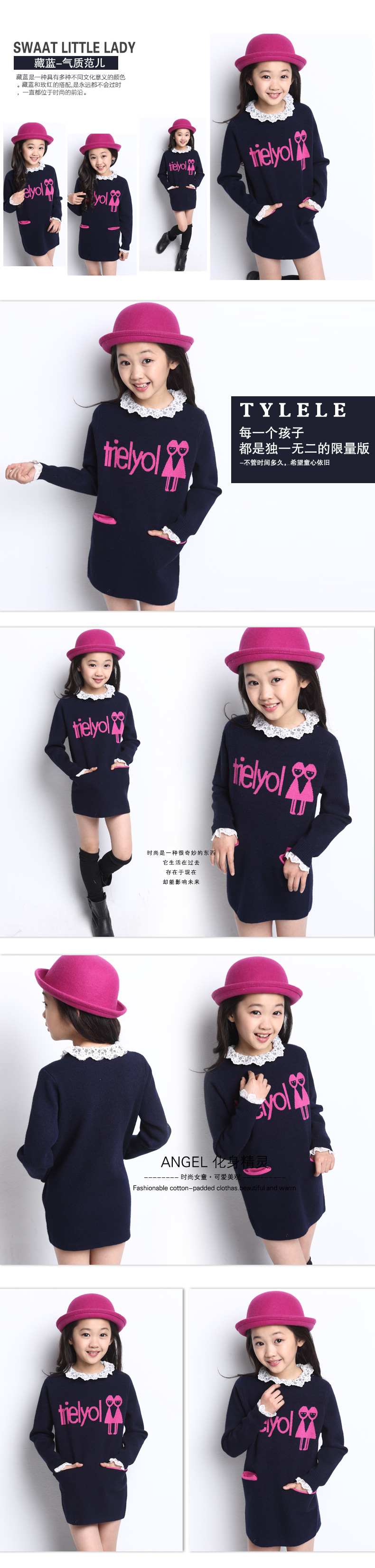 2015韓版新款中大童裙子童裝直銷 女童蕾絲領加長加絨連衣裙