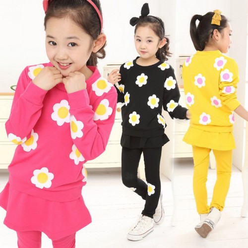 童裝2015新品爆款限量促銷 韓版春秋外貿女童太陽花針織2件