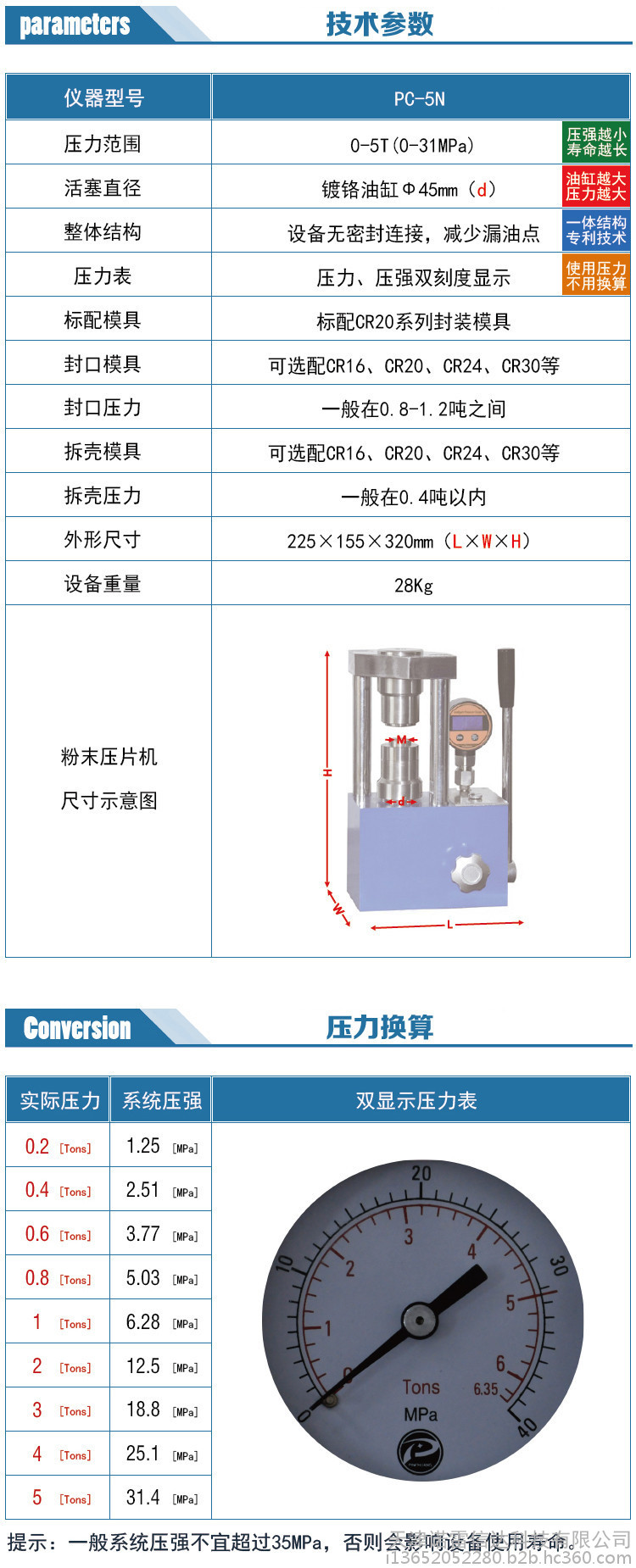 PC-5NS手動(dòng)數(shù)顯紐扣電池封口壓片機(jī)(5800-6500元)