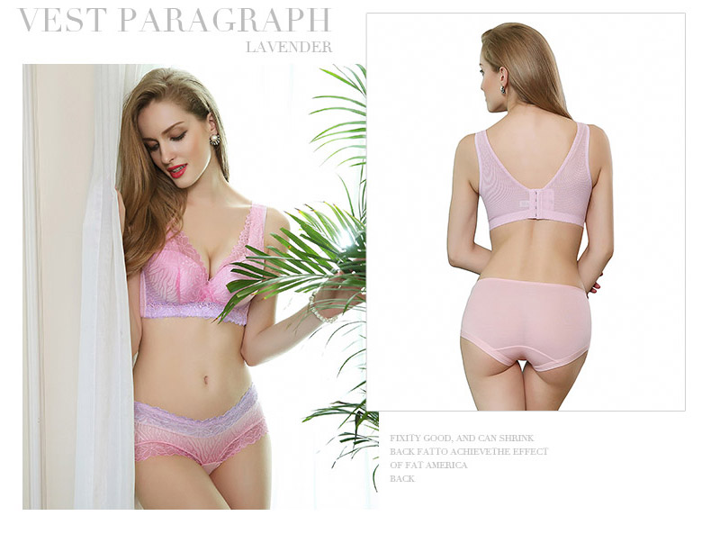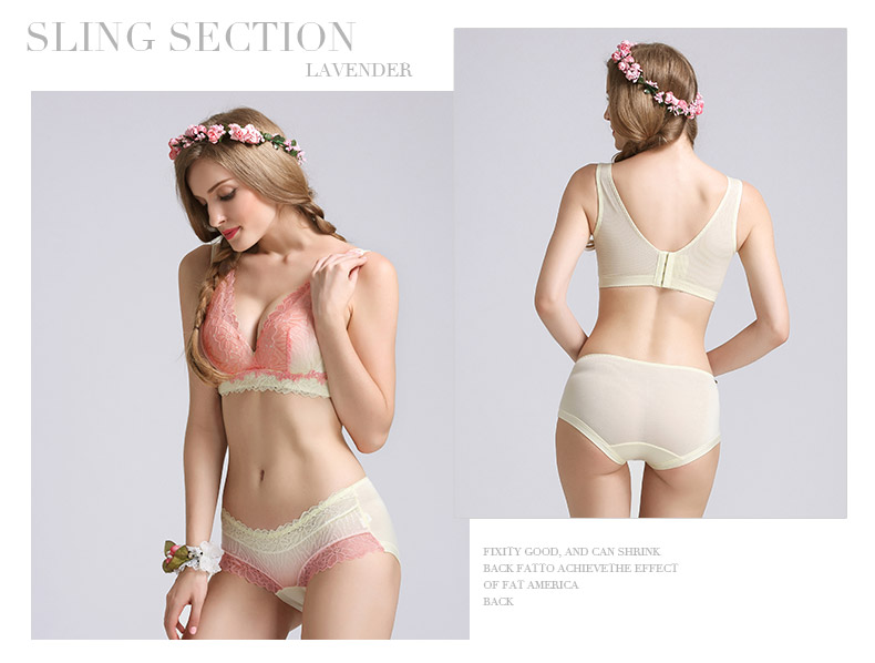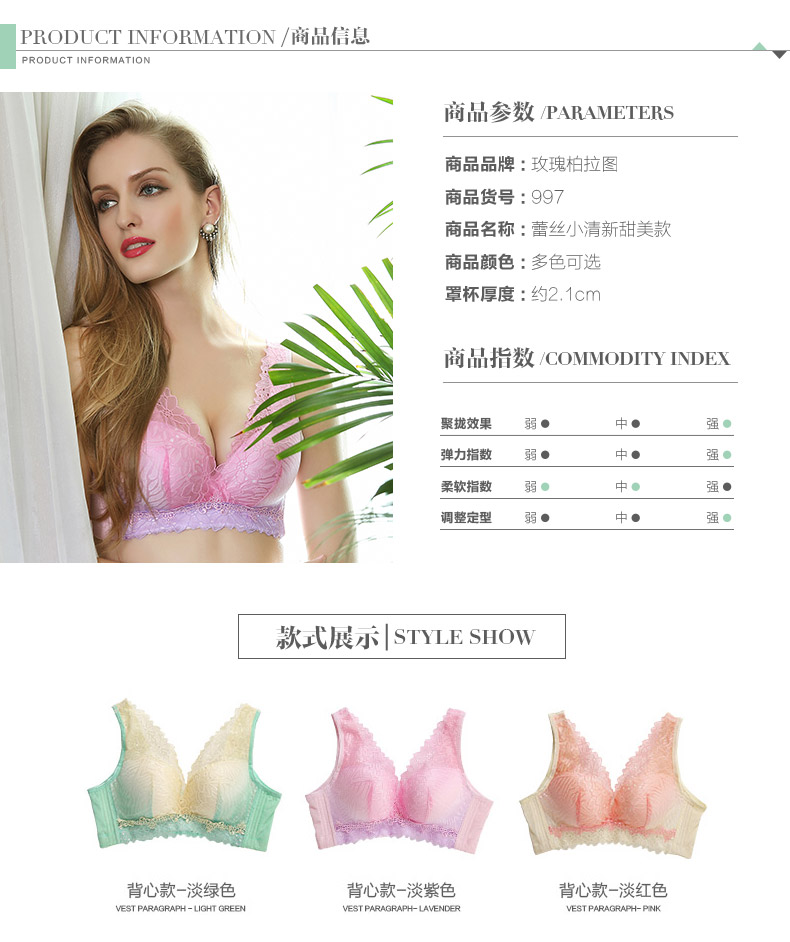 玫瑰柏拉圖新品漸變色蕾絲可愛超聚攏集中背心式調整型無鋼圈文胸