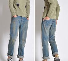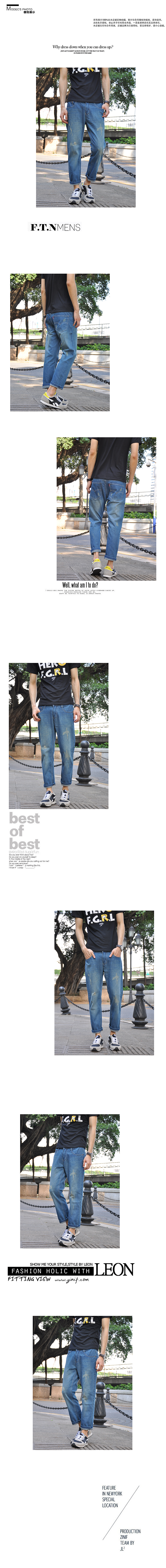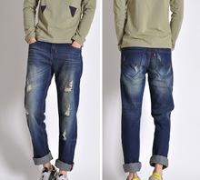 2014男裝新款陳冠希潮牌破洞牛仔褲男九分褲潮褲牛仔褲潮流九分褲