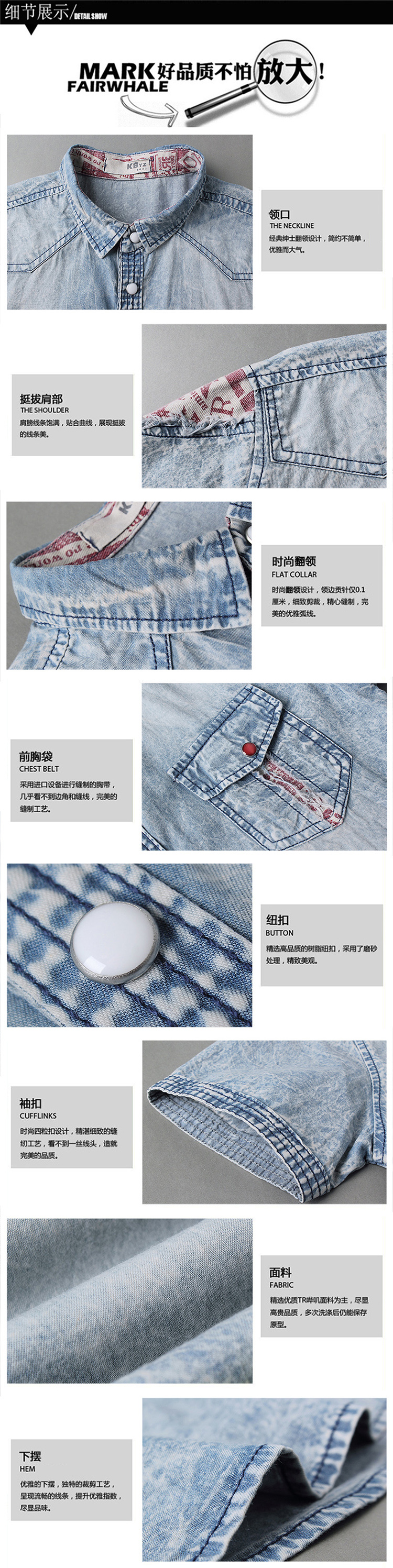 2015春裝新款男裝潮薄牛仔短袖襯衫 男式襯衫 男式牛仔襯衫