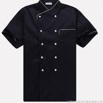 廚師服短袖 飯店餐廳餐飲黑色廚師工作服 酒店后廚工作服可定做