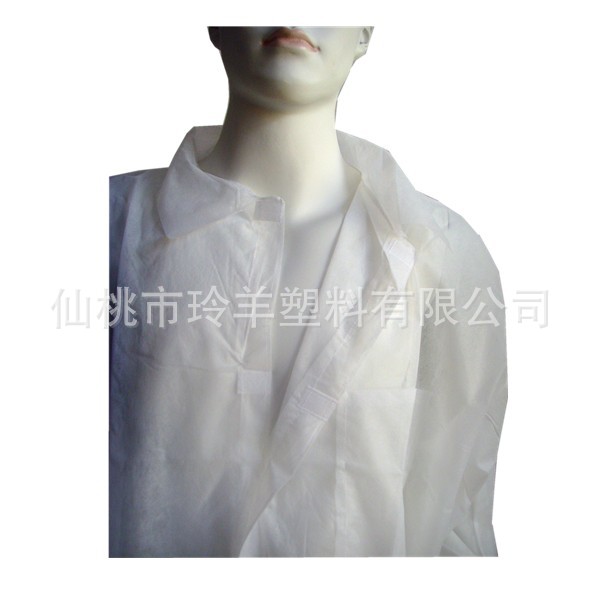 以下就是我司所生產的白色PP實驗服。 款式為 單領+魔術貼。