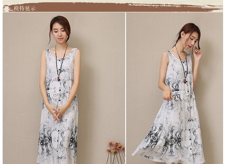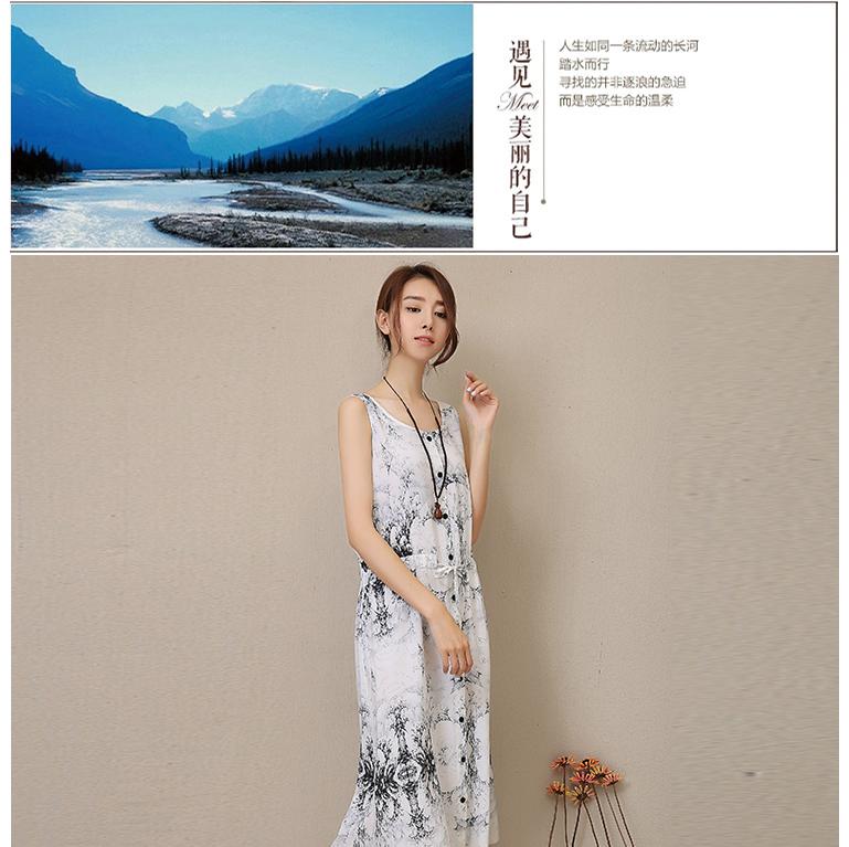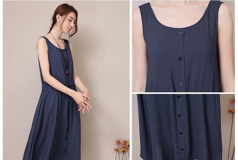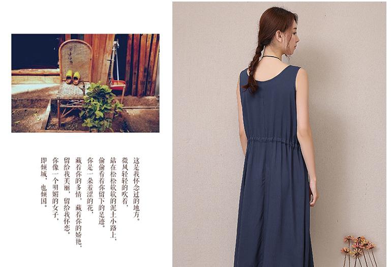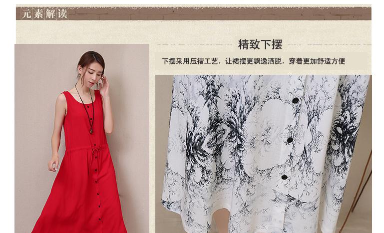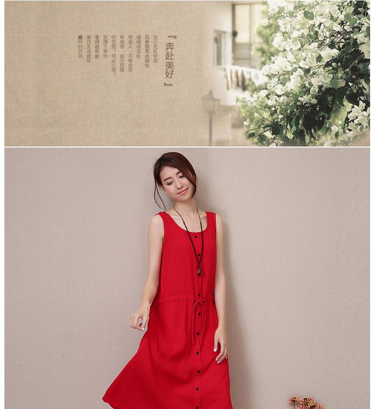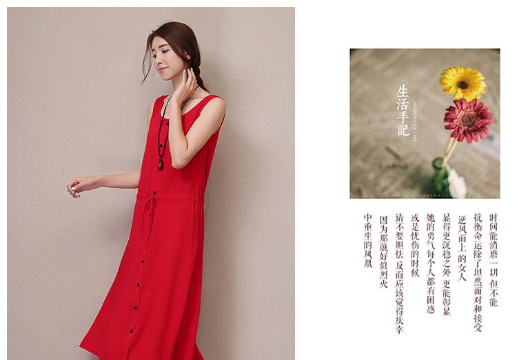 2016春夏裝新款森系小清新文藝女純棉麻紅色連衣裙無袖背心中