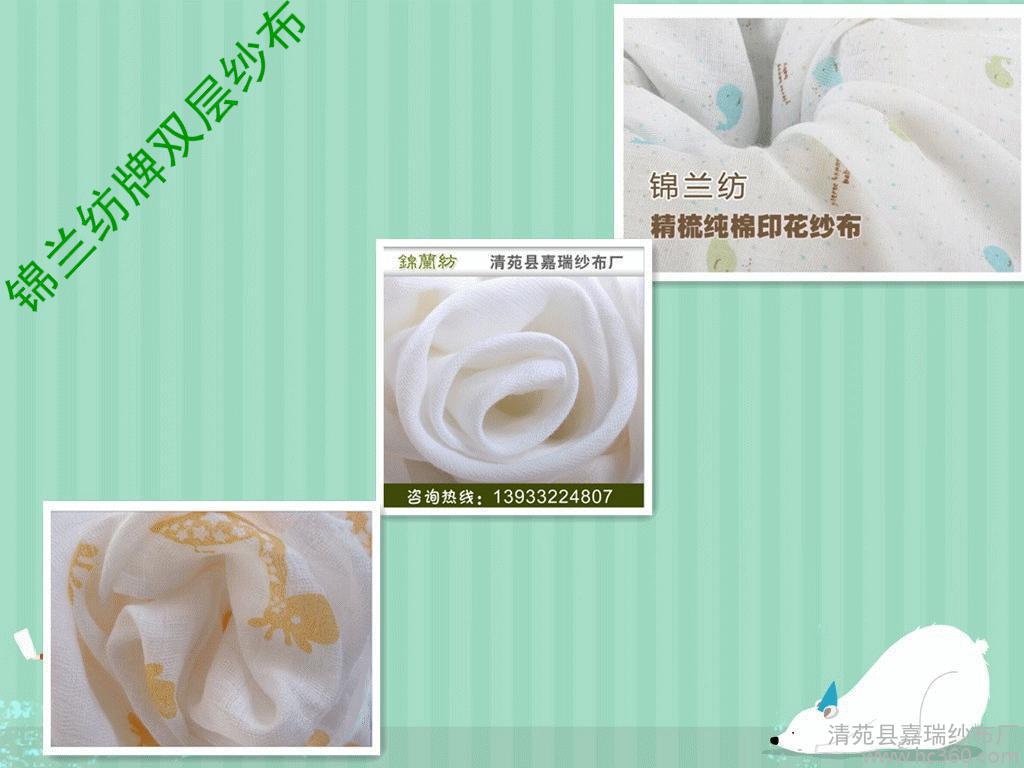 清苑縣嘉瑞紗布廠專業(yè)生產(chǎn)本白紗布 漂白紗布 脫脂紗布 印花紗布。單層紗布代表 口罩紗布 ,雙層紗布代表母嬰用品紗布,歡迎訂購(gòu)!13722203636 13582098155 13933224807 固話8603128058296 0312 8058562 。