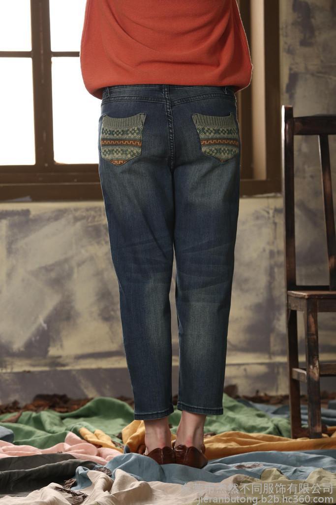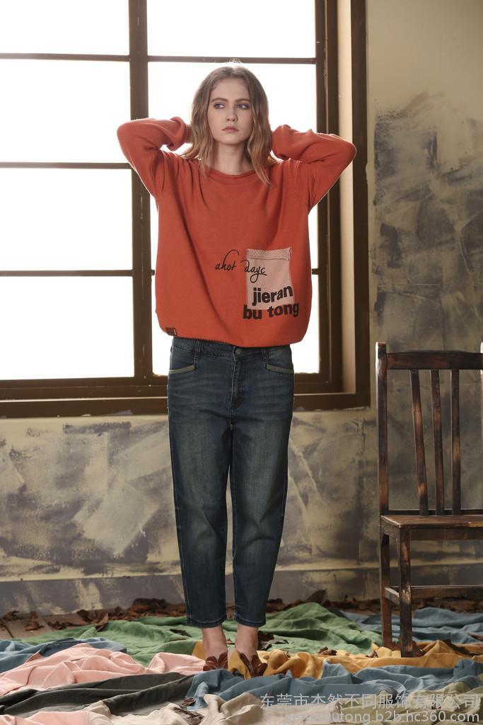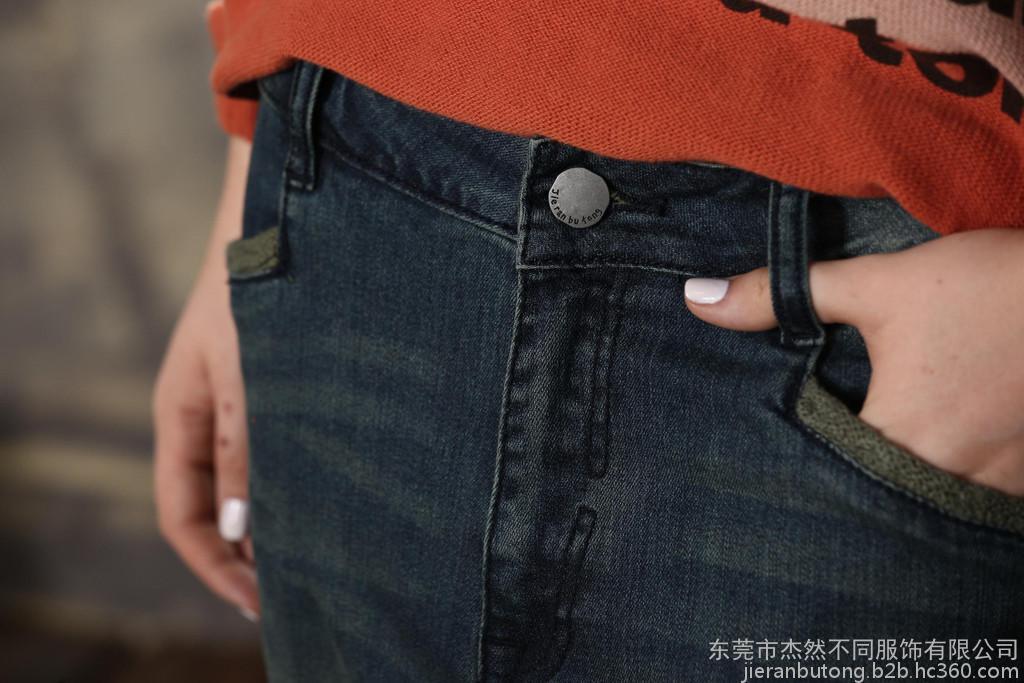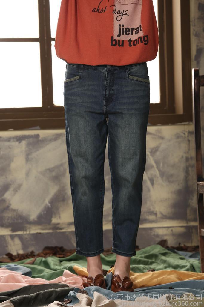 杰然不同秋冬新品牛仔褲女士大碼寬松水洗磨白純色休閑長褲