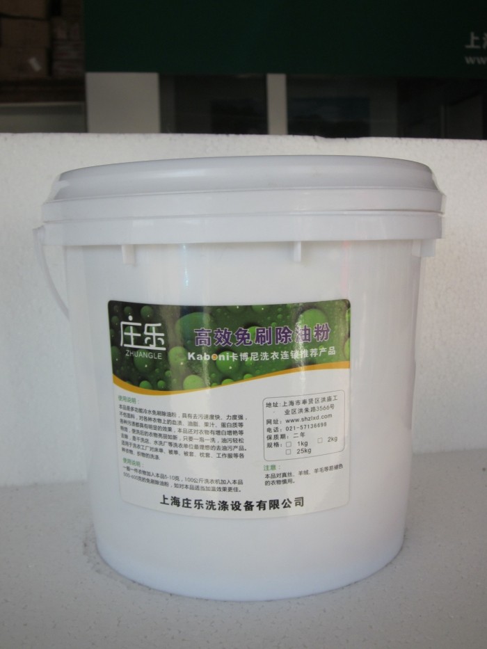 使用說明:本品是多功能冷水免刷除油粉,具有去污速度快、力度強,不傷面料,對各種衣物上的血漬、油脂、果汁、蛋白質等各種污漬都具有明顯的效果,本品還對衣物有增白增艷的**,使洗后的衣物亮麗如新,只要一泡一洗,油污輕松去除,是干洗店、水洗廠等洗衣單位**的去油污產品。