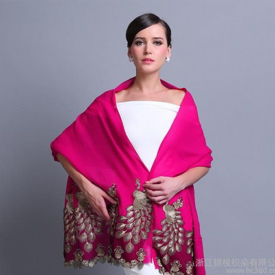 2015秋冬新款純羊毛金線繡花披肩 禮品圍巾 直銷