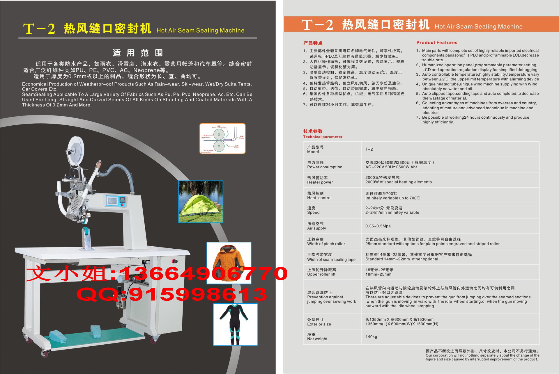 產(chǎn)品別名 | 壓膠機,熱風縫口機,熱風密封機,熱風封口機,熱封粘合機,雨衣設備,帳篷貼膠設備 |