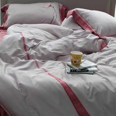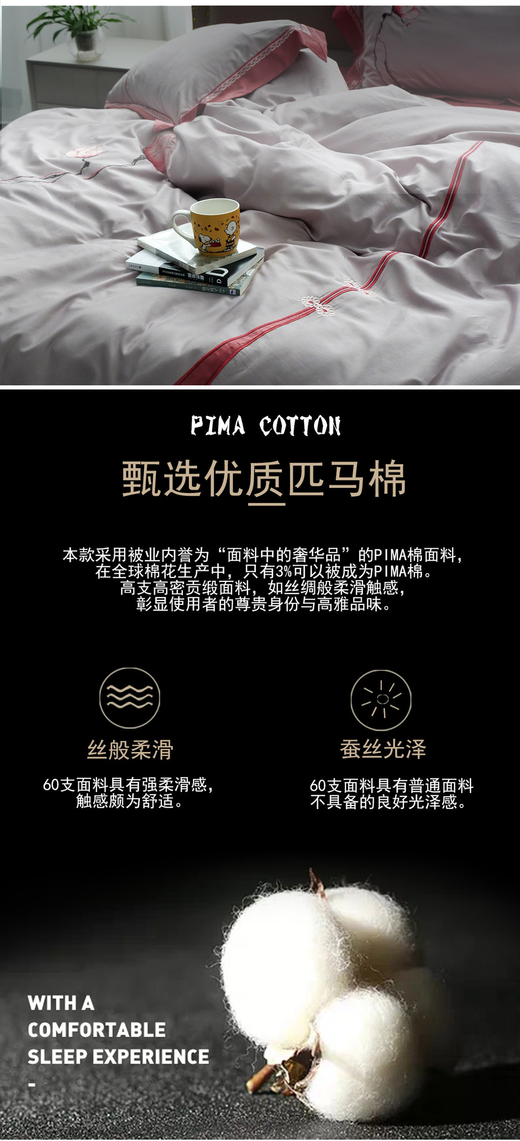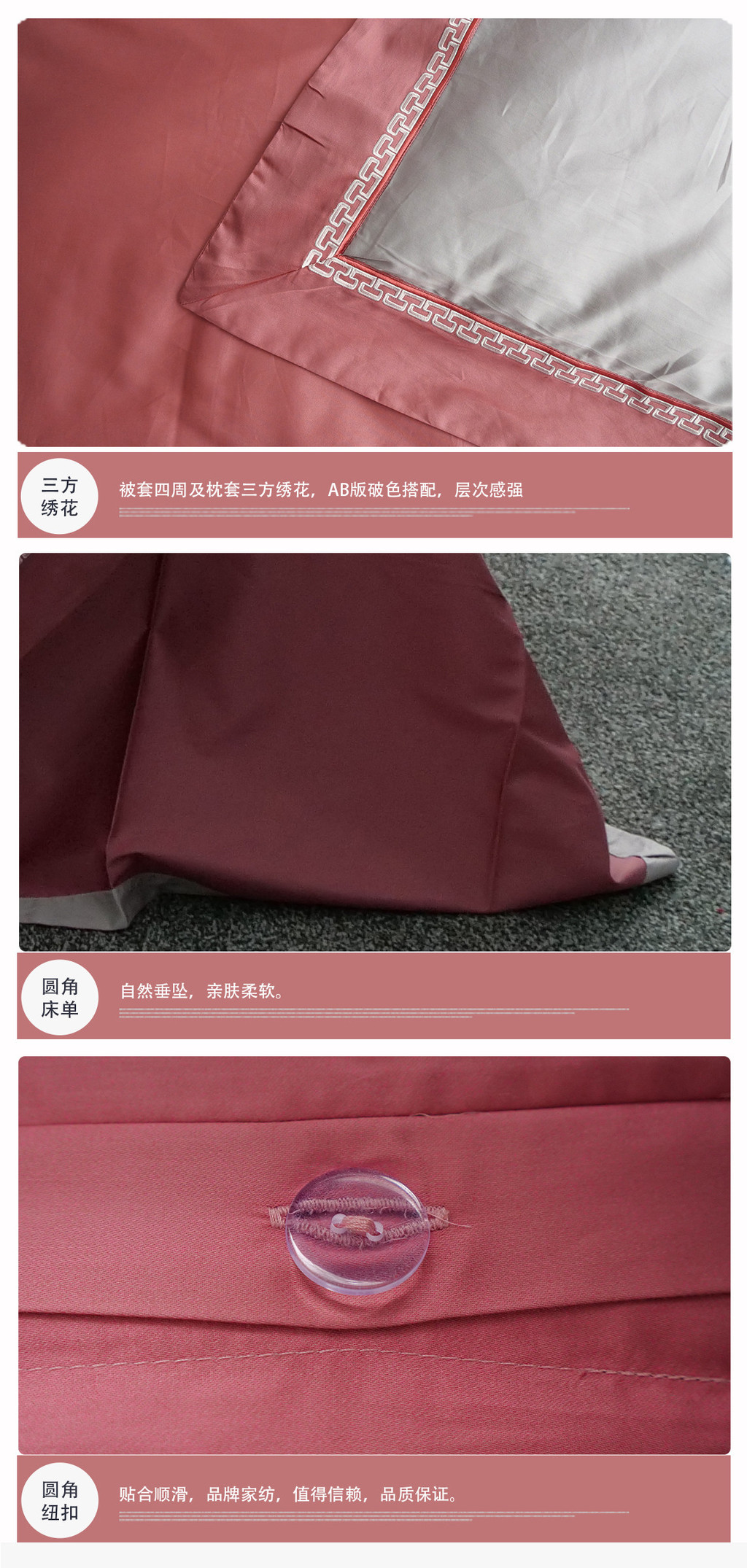 貢緞四件套特點經紗和緯紗至少隔三根紗才交織一次,因此緞紋組織使織物密度更高,所以織物更加厚實。緞紋組織產品比同類平紋、斜紋組織產品成本更高。布面平滑細膩,富有光澤。