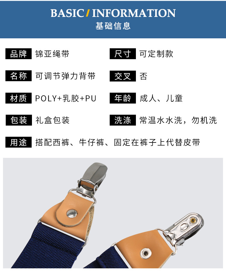 2020新款英倫雙肩背帶彈力松緊男士兒童吊帶背帶**彈力背帶 背帶夾