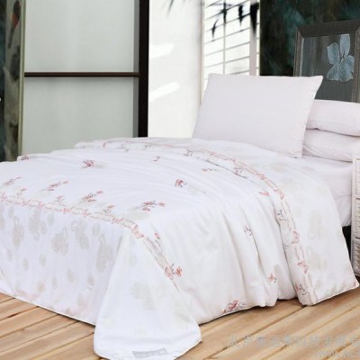 產品特點:本款床品花型采用行內**設計師專門設計打造,簡潔花型,面料柔軟,填充為蠶絲.桑蠶絲是制作蠶絲被的**原料,蠶絲做成的蠶絲被不僅柔軟貼身,富有彈性,使被品具有較好的保暖效果;透氣性好;還因其綠色健康的特性,對人體具有多種保建作用.而且蠶絲的吸濕性是純棉的倍,所以能保持皮膚水份的平衡,對皮膚干燥的老年人有很好的療效.工精良,工藝考究,精選**桑蠶絲,且被品重量輕盈,雙線條紋樣,流暢且有光澤,是您**選擇