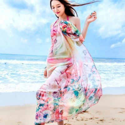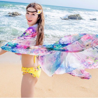 絲巾女士紗巾春秋長款圍巾沙灘巾夏雪紡兩用百搭防曬披肩防曬衣