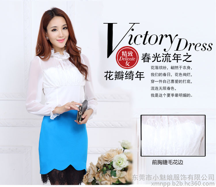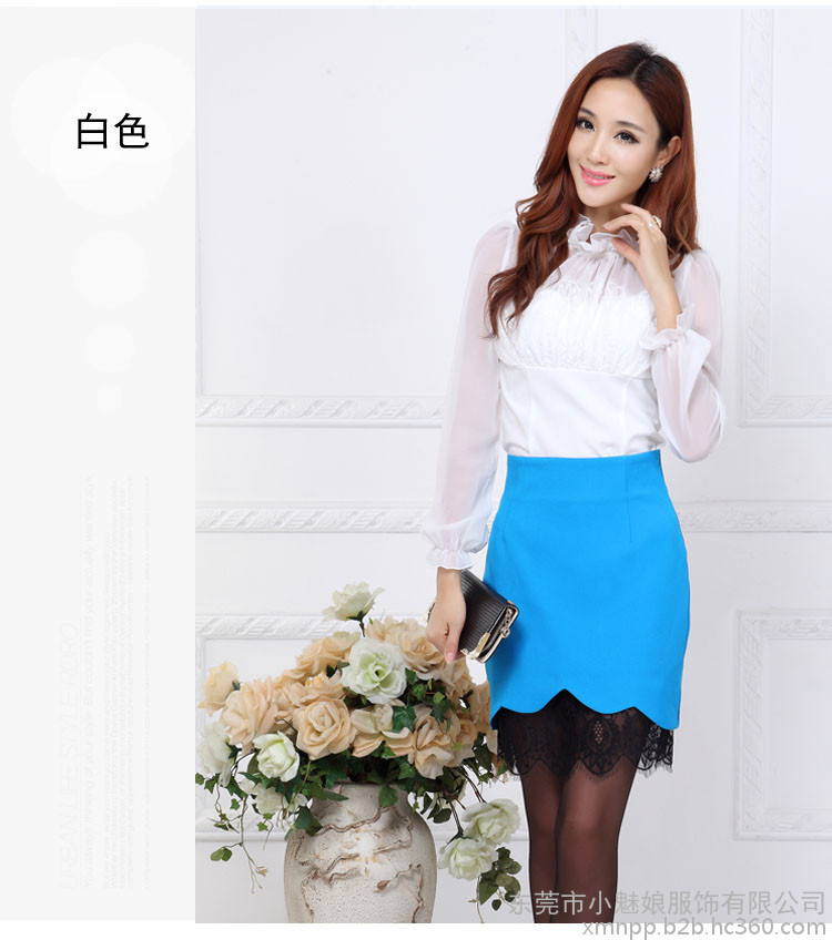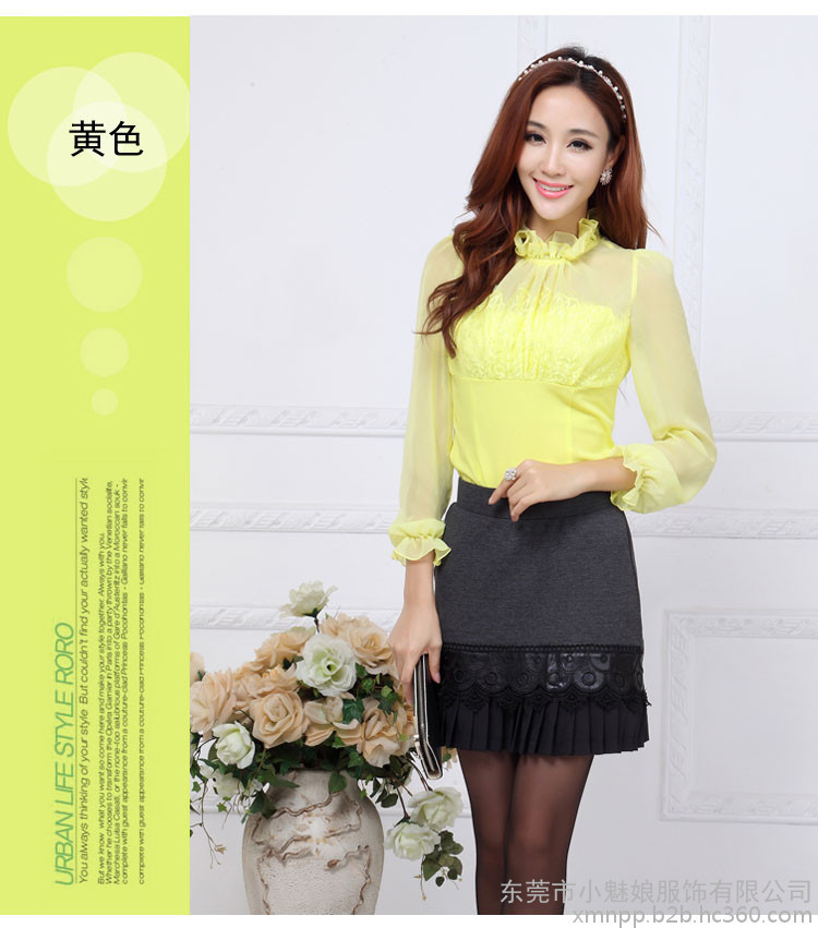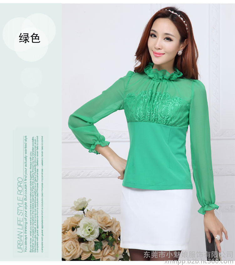 小魅娘女裝廠家生產雪紡衫荷葉領蕾絲長袖襯衫 女士襯衣批發