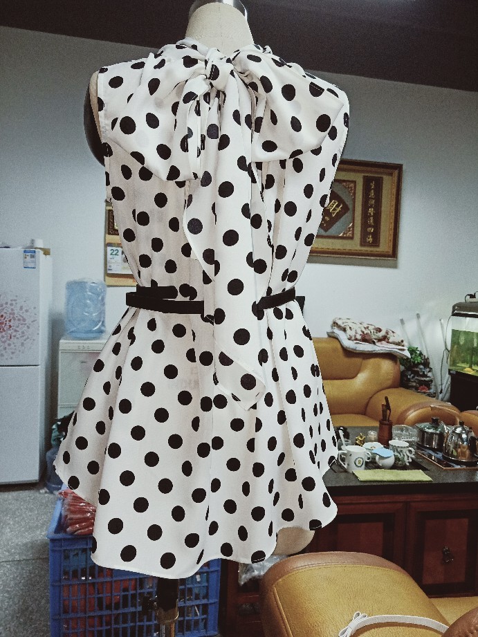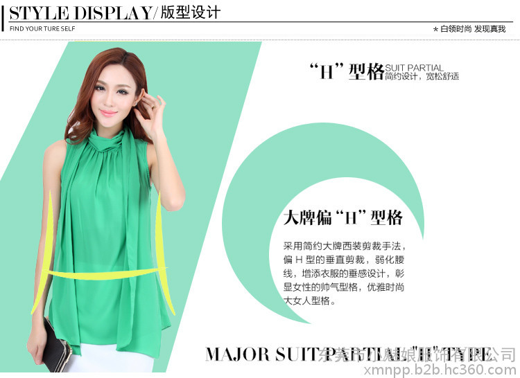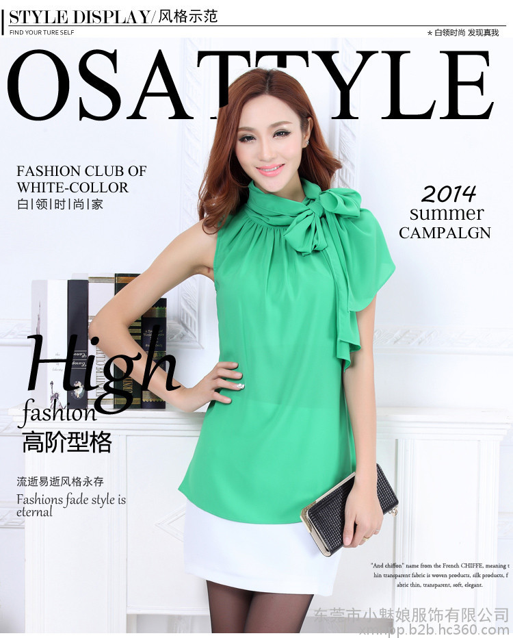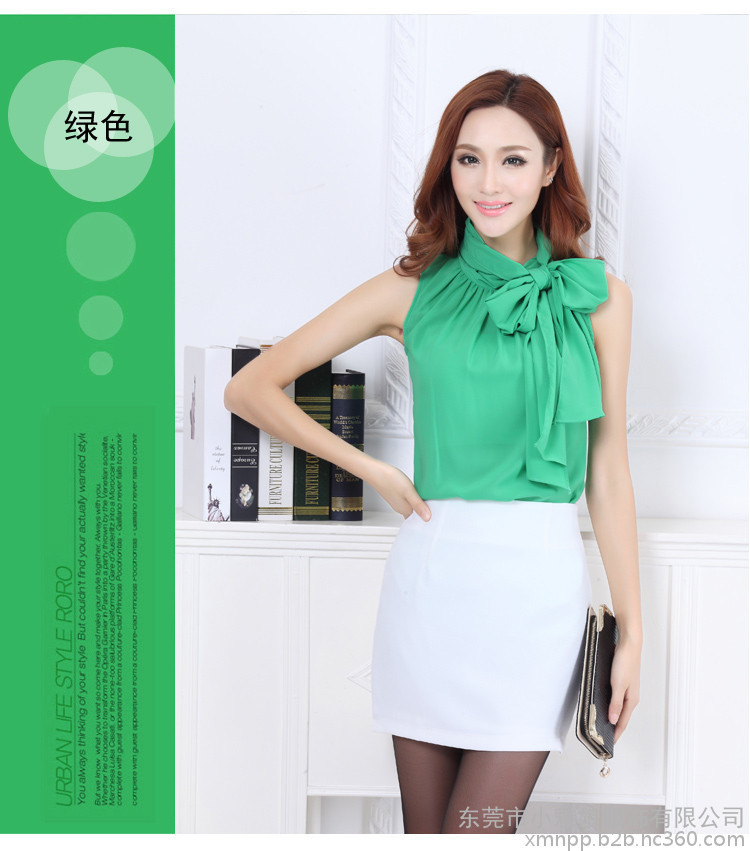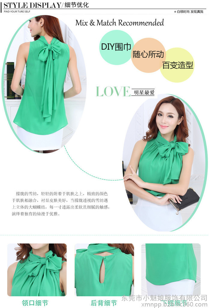 小魅娘女裝廠家生產雪紡衫套頭圍巾領飄帶背心無袖襯衫蝴蝶結卦子