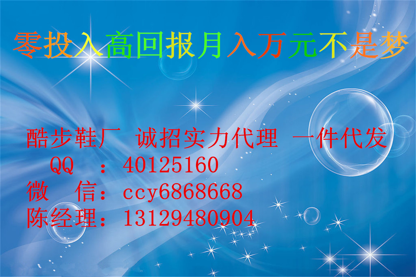 我們是擁有數十年品牌運動鞋加工歷史的實力廠家,在東莞,廣州,莆田均有工廠,現面向各地區招收實力代理,聯系電話:13129480904,QQ:40125160,微信:ccy6868668 此鏈接為代理加盟,詳細產品信息請訪問://yuqiaoc.v.yupoo.com/(把網址復制到IE地址欄即可)