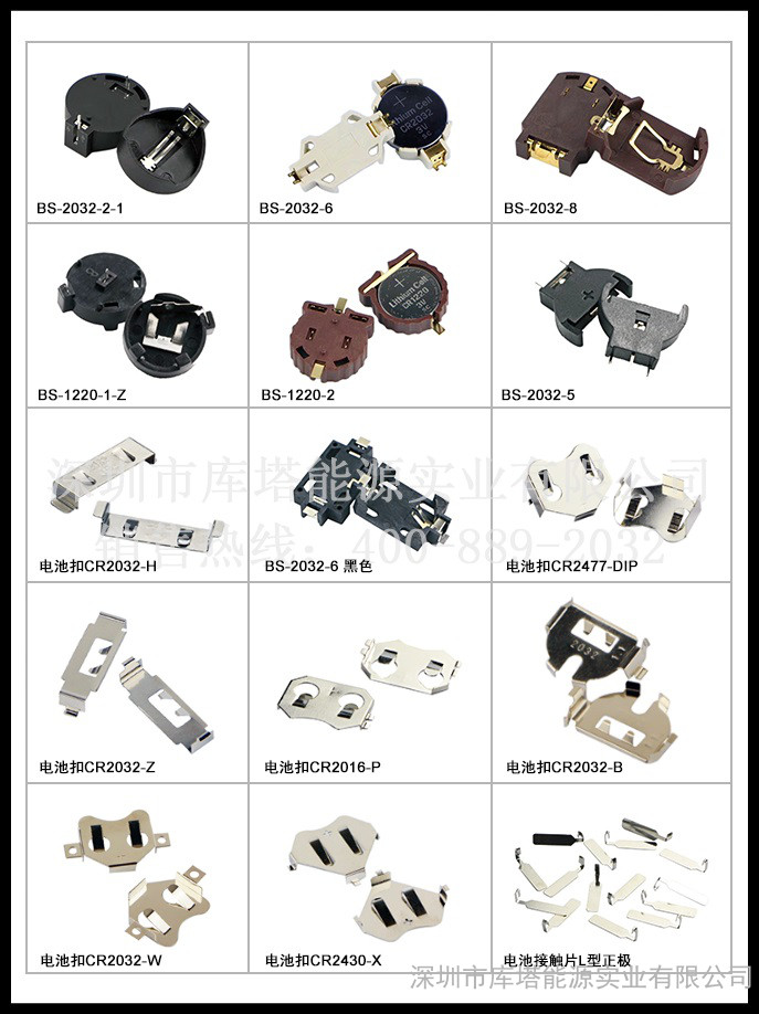 特點:更換電池方便、快速,設計有紐扣電池的卡緊固定裝置,紐扣電池安裝牢固連接明確,分隔防止短路極性反接保護(極化),防止故障電流結構堅固,由于具備額外的定位銷,因此電路板的安裝更加方便安全。以下為部分電池座和電池扣圖片:
