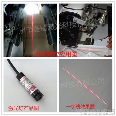 速鐳激光縫紉機一字線激光器采用原裝進口激光二極管和58°透鏡,打出來的為一字線,激光器的安裝高度與打出來的紅線長度的比例為1:1,如激光器的安裝高度為100cm,打出來的小十字紅線長度為100cm。安裝高度1米內適用,光線粗細為0.8-1mm。