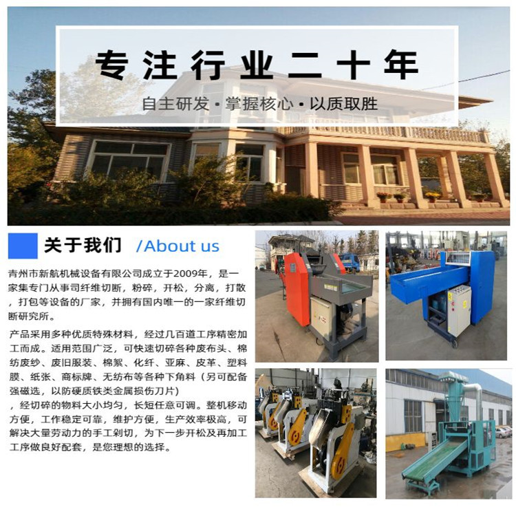 青州市新航機(jī)械設(shè)備有限公司生產(chǎn)的纖維切斷機(jī)是一旋轉(zhuǎn)扭刀式切斷機(jī),可用于軟體材料的切段,滌綸纖維短切切斷機(jī),切片,短切,粉碎等。此種纖維切斷機(jī)采用了****的轉(zhuǎn)刀技術(shù),可用較小的動力配置完成客戶的要求,整機(jī)用料足,刀具由刀板和刀頭焊接而成,個別刀頭的損壞不影響整體刀具的使用,刀頭壞了可以單**換,避免原來使用的一體刀有缺口**整把刀具廢棄的特點經(jīng)退火去應(yīng)力處理,**可靠,產(chǎn)量大,節(jié)約時間成本、降低勞動成本。 噪音低、動作平穩(wěn)、操作方便、靈活、剪切斷面大、剪刀口調(diào)整方便等優(yōu)點,操作使用安全,易于實現(xiàn)過載保護(hù)。