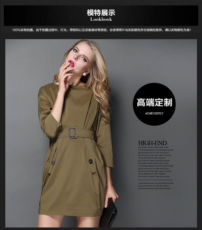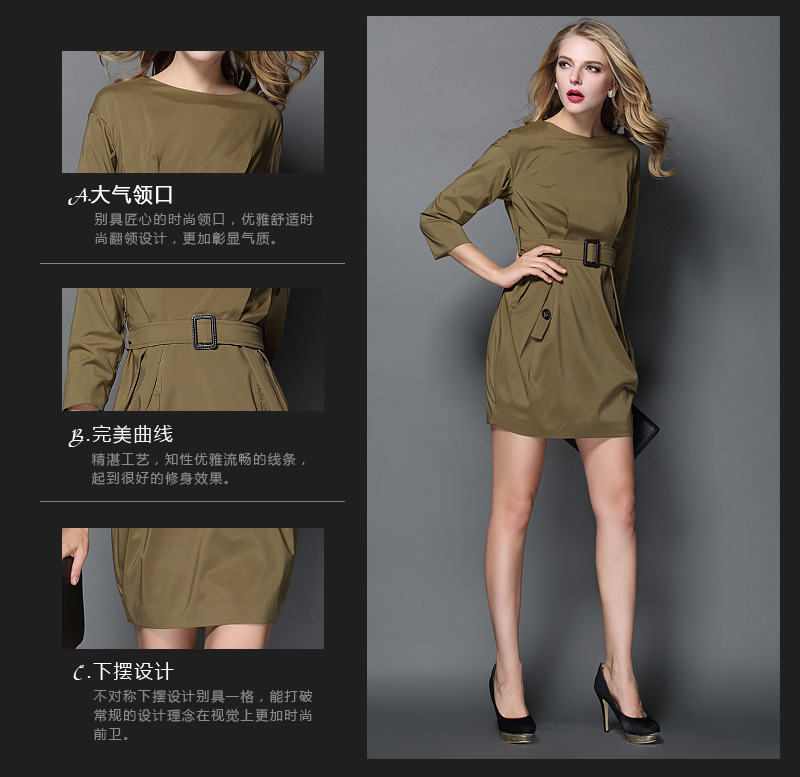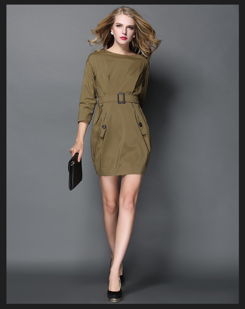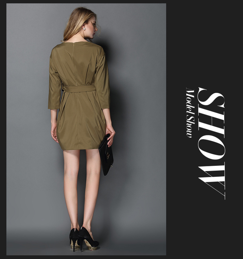 歐洲站2015春夏季新款絳棉凈色圓領(lǐng)有腰帶女式連衣裙子 直銷