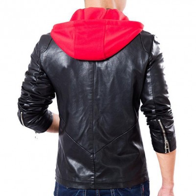 一件代發男裝 秋冬 PU皮紅帽子皮衣 男皮夾克J@@%45