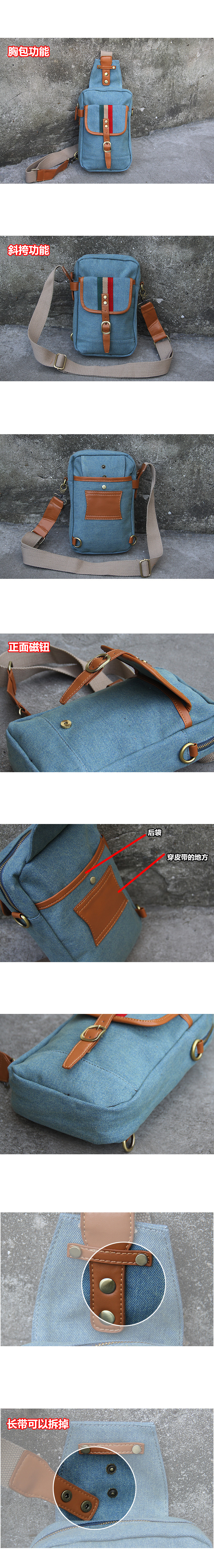代發時尚休閑外貿男裝 服飾 包包 牛仔布胸包